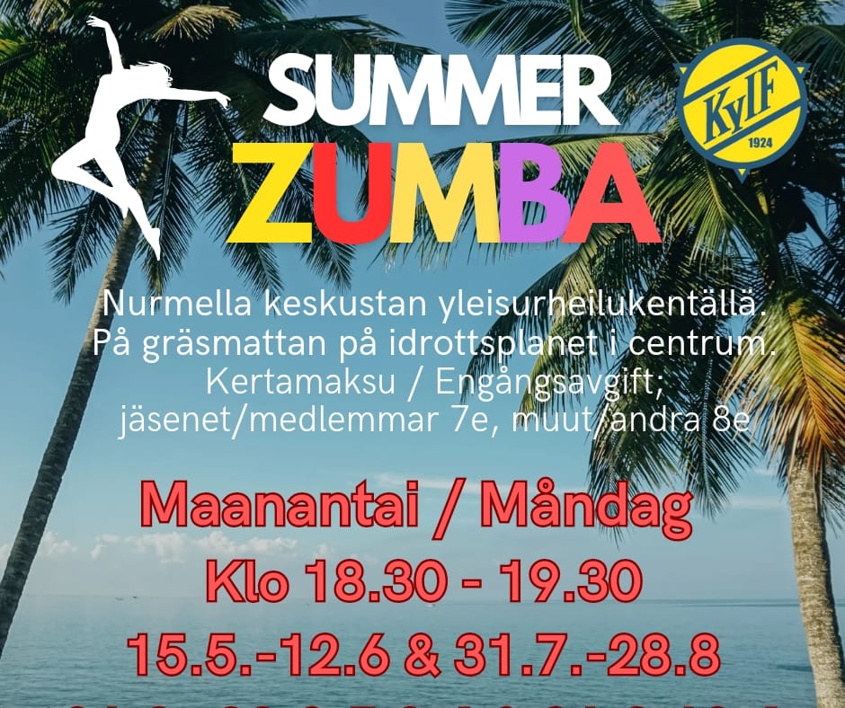 Söndag / Sunnuntai (18.9.2022-16.4.2023) klo.16.45-17.45 Zumba, Kirkkonummen uimahalli (Ioulia)